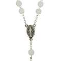 Rosario imitazione madreperla tondo diametro 7 mm bianco con legatura a mano in ottone argentato