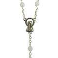 Rosario imitazione madreperla tondo mm. 4 con legatura in ottone argentato - bianco