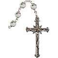 Rosario in argento 925 con grani mm 6 in vetro bianco con piccole rose