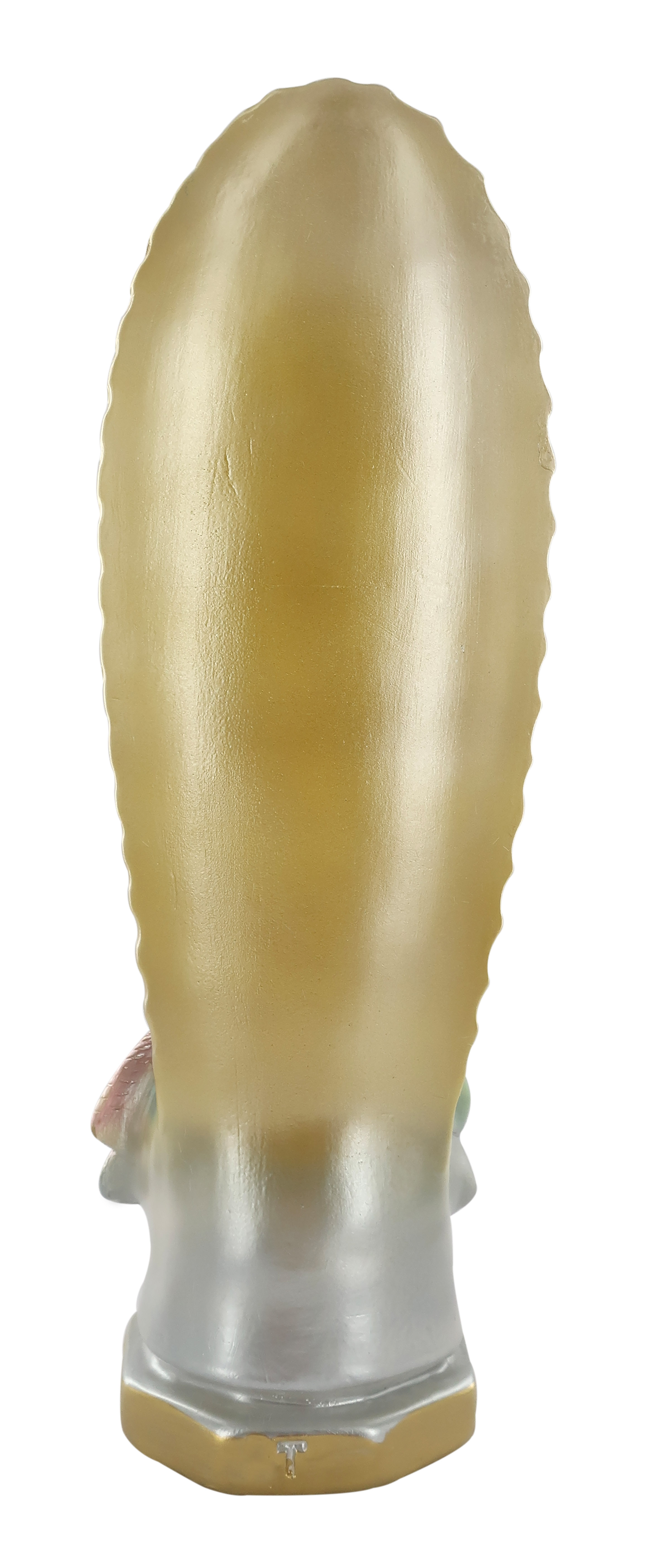 Questa statua della Nostra Signora di Guadalupe da 25 cm è realizzata artigianalmente in Italia e si distingue per la qualità della fattura e per il sapiente uso dei colori. L'effetto madreperlato rende le tinte molto lucenti e arricchisce la figura di suggestivi riflessi, donandole un aspetto elegante e raffinato.