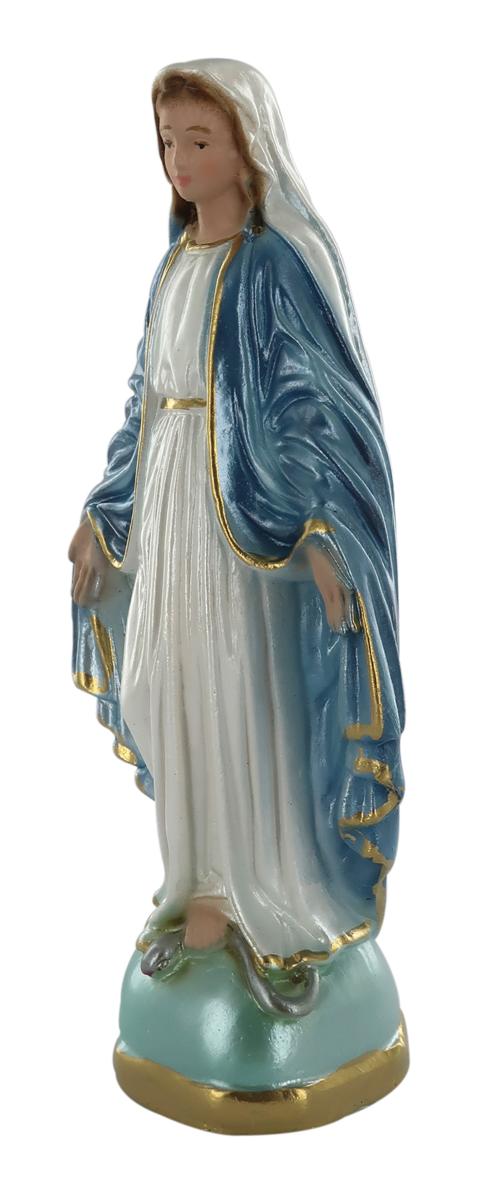 Ferrari & Arrighetti Statua Madonna Miracolosa Dipinta a Mano, Statua Religiosa Classica della Madonna Miracolosa, Statua Religiosa per Nicchia o Vetrinetta, Gesso Madreperlato, 15 Cm