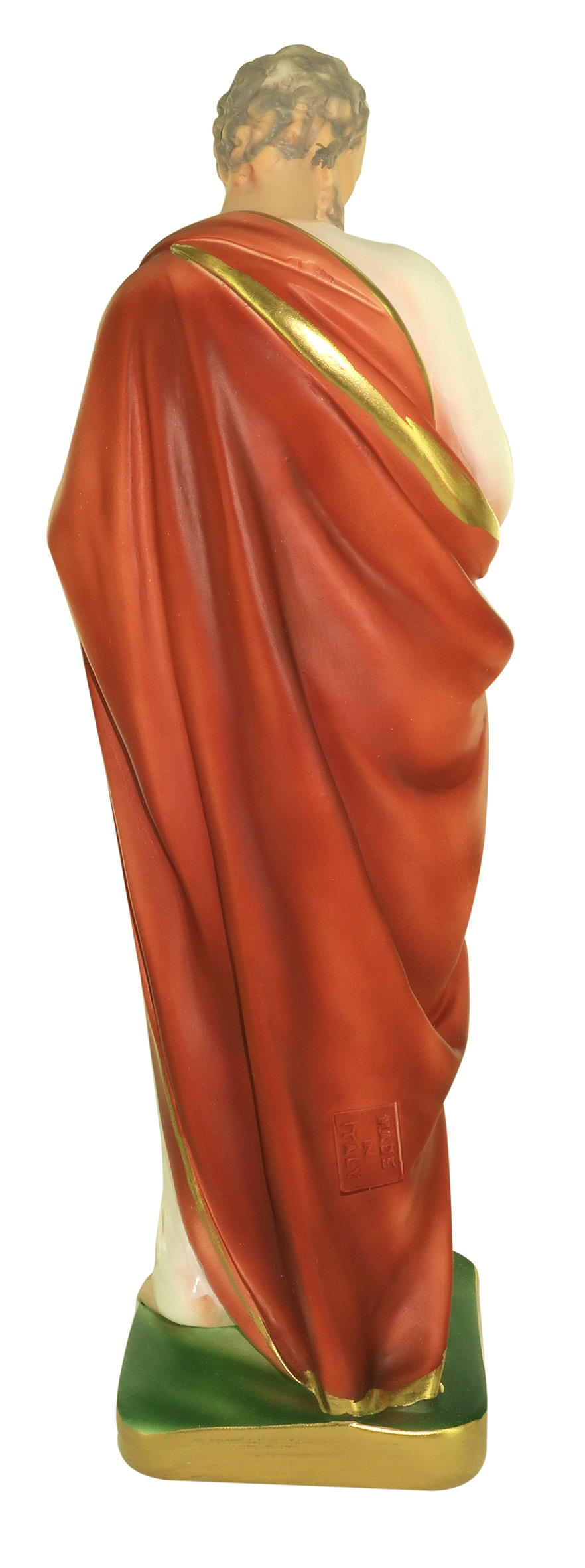 Questa statua di San Paolo da 33 cm è realizzata artigianalmente in Italia e si distingue per la qualità della sua fattura, il sapiente uso di colori sfumati e la resa accurata delle linee delle vesti. Tali caratteristiche contribuiscono a donare profondità e corpo al soggetto. Adatta anche a piccole nicchie in luoghi di culto, può inoltre essere esposta in casa come soprammobile o in una vetrinetta. La statua di S. Paolo è una gradita idea regalo per i suoi devoti. Lumini o faretti esalteranno la tridimensionalità del personaggio e ne aumenteranno l'impatto visivo.
