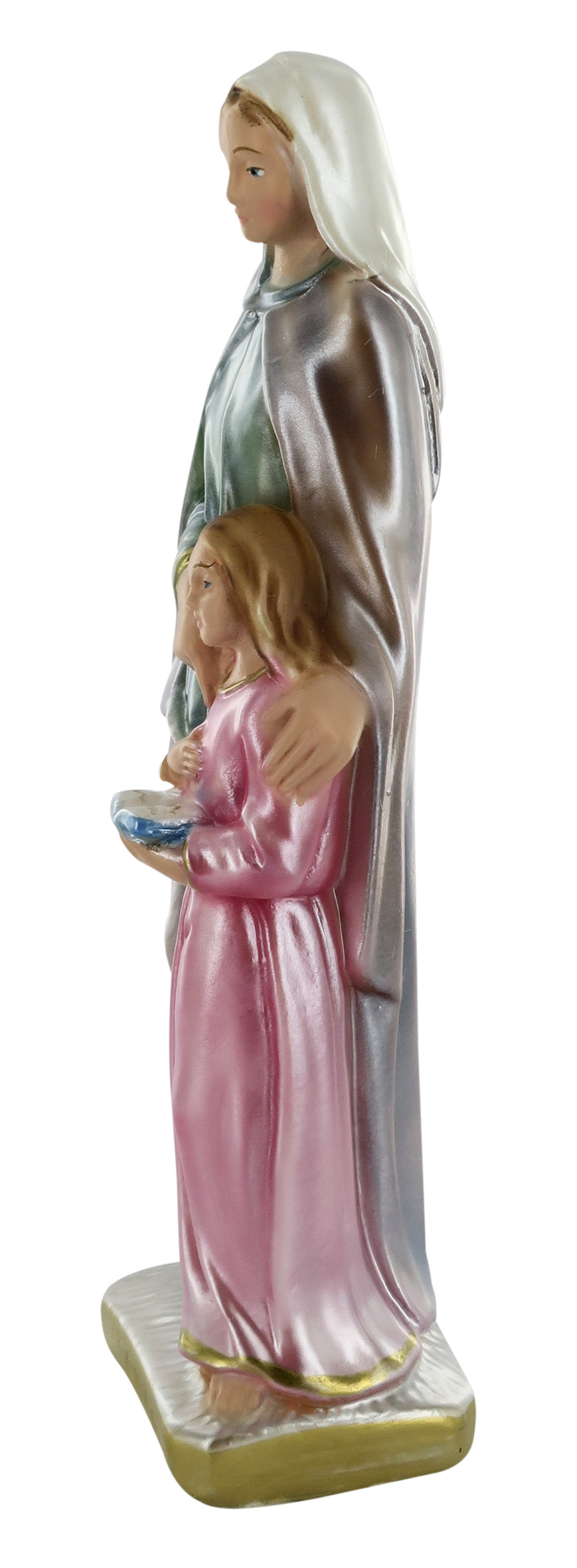 Ferrari & Arrighetti Statua Sant'Anna Dipinta a Mano, Statua Religiosa Classica di S. Anna, Statua Religiosa per Nicchia o Vetrinetta, Gesso Madreperlato, 20 Cm