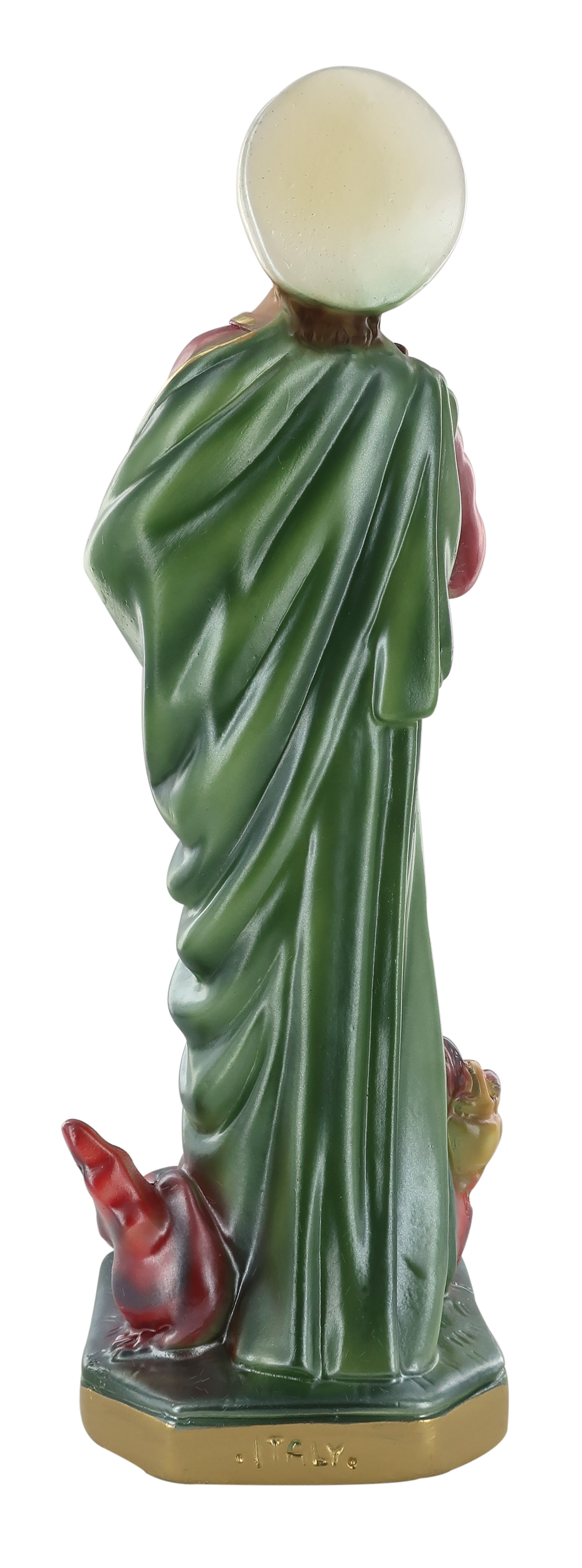 Questa statua di Santa Marta da 30 cm è realizzata artigianalmente in Italia e si distingue per la qualità della fattura e per il sapiente uso dei colori, adeguatamente dosati. L'effetto madreperlato rende le tinte molto lucenti e arricchisce la figura di suggestivi riflessi, donandole un aspetto elegante e pregevole. La statua di Santa Marta, adatta anche a nicchie in ambienti dedicati al culto, è ideale per essere esposta in casa come soprammobile o in una vetrinetta. Sarà una gradita idea regalo per i devoti a questo personaggio. La luce delle fiammelle dei lumini o dei faretti esalterà l'effetto iridescente della sua rifinitura madreperlacea.