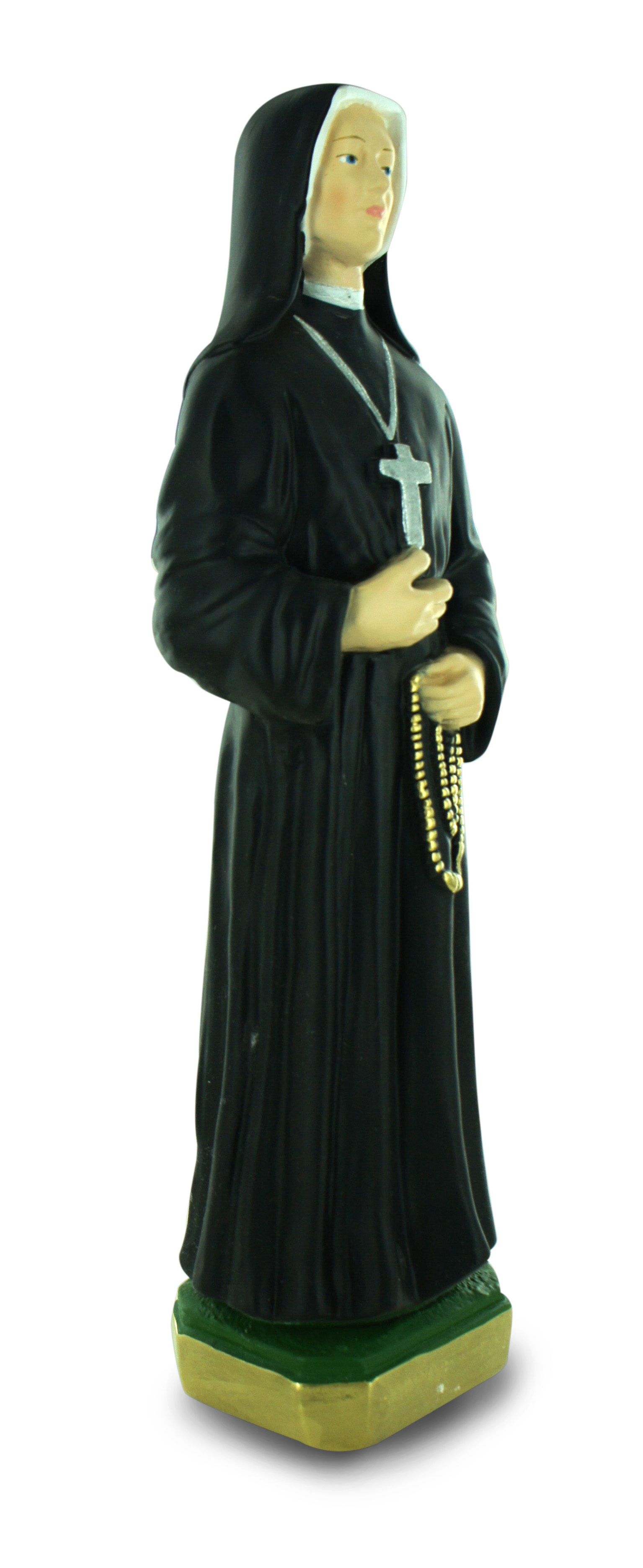La statua, in gesso dipinto a mano, è dedicata a Suor Faustina Kowalska, religiosa di origine polacca della prima metà del '900. Parte della congregazione delle Suore della Beata Vergine Maria della Misericordia, è stata canonizzata da papa Giovanni Paolo II nel 2000. In questa statua, la suora indossa la tunica nera tipica del suo ruolo, su cui spiccano una croce al collo di color argento e un rosario di color oro in mano. Attribuitele visioni, stigmate nascoste, l'ubiquità e la capacità di leggere nelle anime, Santa Maria Faustina viene celebrata il 5 ottobre.