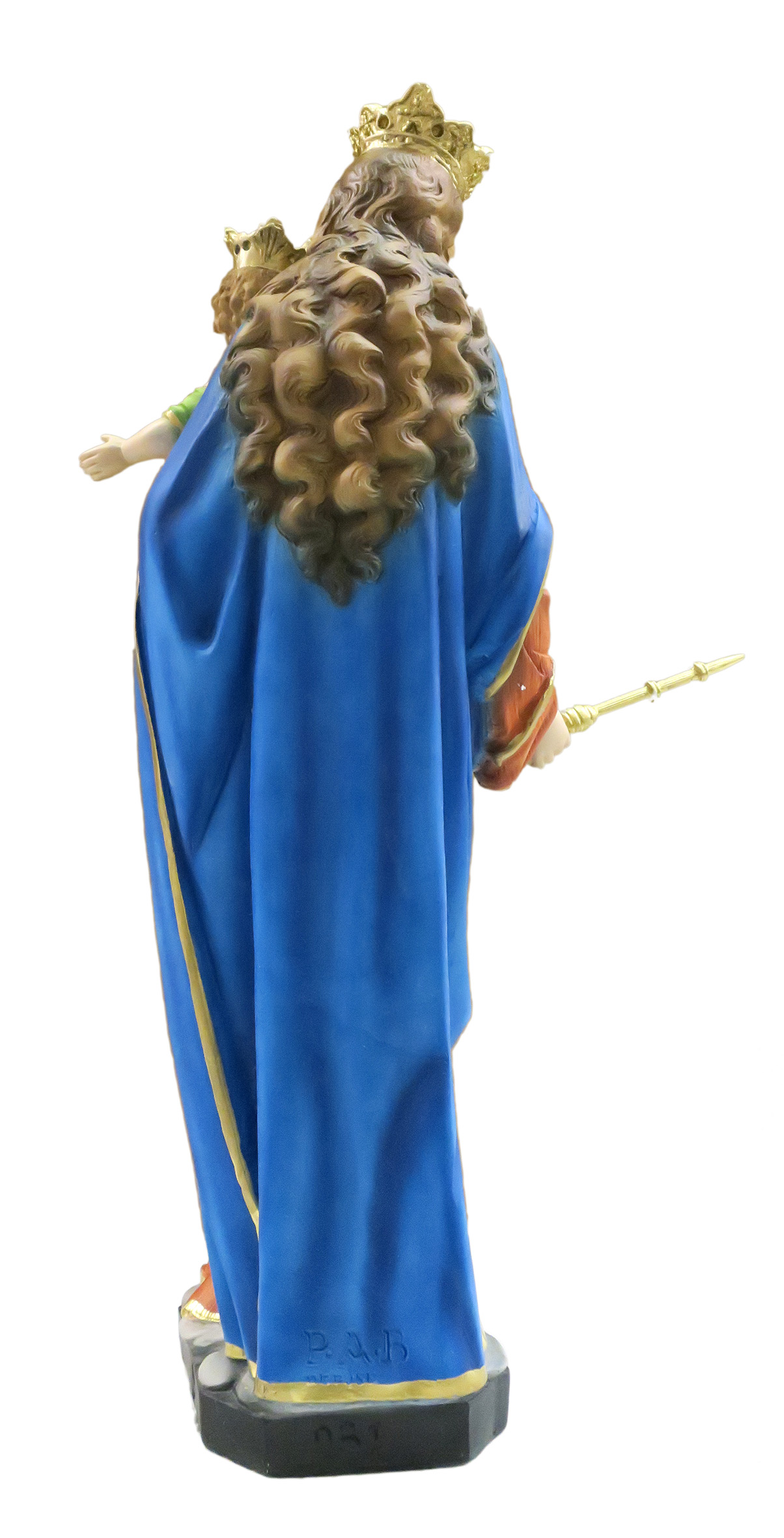 Questa statua di Maria Aiuto dei Cristiani da 60 cm è realizzata artigianalmente in Italia e si distingue per la qualità della fattura e per il sapiente uso dei colori. Adatta a grandi nicchie, ampi ambienti dedicati al culto, cappellette e edicole votive, la statua di S. Maria Ausiliatrice risulterà ancora più bella se illuminata da faretti, che esalteranno la tridimensionalità e l'impatto visivo del soggetto.