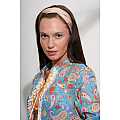 Caftano lungo in voile di cotone, fantasia “Papeete”; maniche con allacciatura a fiocco; giochi di frange, passamanerie, fiore crochet fatto a mano e pom-pom sullo scollo; nastro decorativo tra le balze.