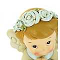 L'angelo che prega con luce, molto adatto per bambini, è una statuina di resina dipinta vuota al suo interno, che ospita una luce LED alimentata da batterie tipo AG3 (spesso usate negli orologi). Le vesti dell'angelo hanno dei fori a forma di cuore, da cui esce la luce prodotta dalla lampadina al suo interno. Il dolce angelo indossa una veste color crema, dagli orli azzurri, e ha le mani conserte in segno di preghiera. Sul volto beato, con gote sfumate, si notano i capelli biondi mossi, adornati da una corona di fiori azzurri. L'uso di colori abbastanza coprenti e opachi dona alla statuina un aspetto molto simile all'argilla.