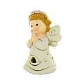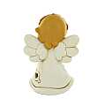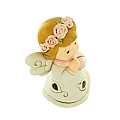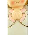 L'angelo che prega con luce, molto adatto per bambini, è una statuina di resina dipinta vuota al suo interno, che ospita una luce LED alimentata da batterie tipo AG3 (spesso usate negli orologi). Le vesti dell'angelo hanno dei fori a forma di cuore, da cui esce la luce prodotta dalla lampadina al suo interno. Il dolce angelo indossa una veste color crema, dagli orli rosa, e ha le mani conserte in segno di preghiera. Sul volto beato, con gote sfumate, si notano i capelli biondi mossi, adornati da una corona di fiori rosa. L'uso di colori abbastanza coprenti e opachi dona alla statuina un aspetto molto simile all'argilla.