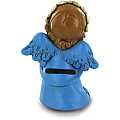 STOCK:Angelo salvadanaio in resina azzurro con fiore giallo da 12,5 cm