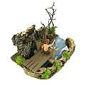 Accessori per presepe: Laghetto con pescatore. Dimensioni: 19 x 17 x 18 cm Materiali: Legno, sughero, muschio e lichene. La statuina del pescatore è in plastica ed è da 10 cm. Realizzato artigianalmente in Italia.