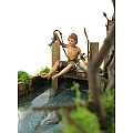 Laghetto con Pescatore sul Molo per Presepe, Segmento Finale di Fiume Componibile per Presepe, Legno/Plastica, 19x17x18 Cm