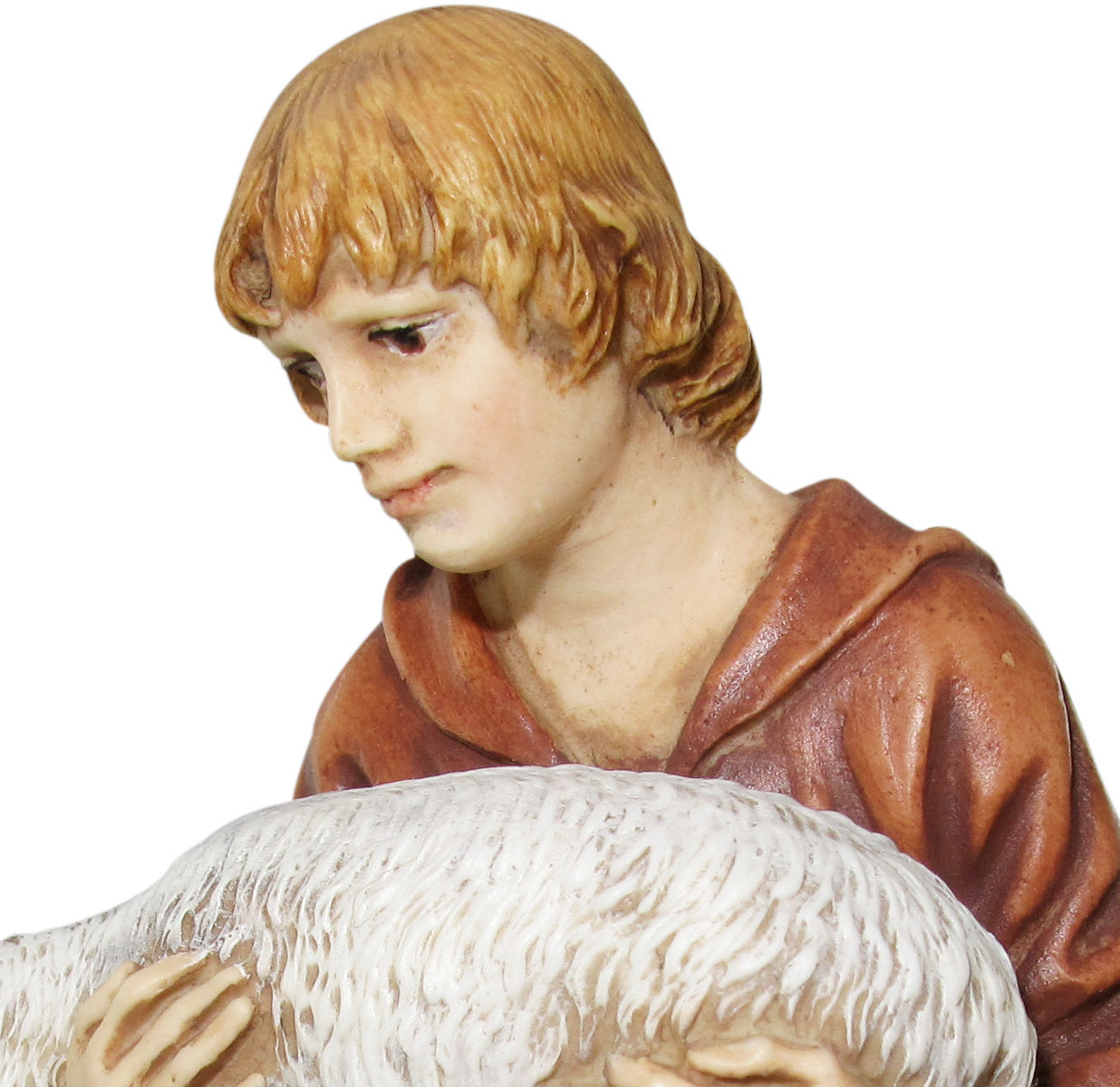 La statua del pastore in ginocchio con agnello per presepe Landi da 120 cm, in resina colorata e rifinita a mano, è stata ideata dallo scultore d’arte sacra Martino Landi e rappresenta un personaggio che arricchirà sicuramente il vostro presepe di grandi dimensioni. Il pastore è raffigurato inginocchiato e cinge un agnello tra le braccia, che sarà dato in dono alla Sacra Famiglia. La sagoma dell’ovino spicca grazie al marrone carico della tunica del pastorello e ai suoi capelli chiari. Questa statua contribuirà a rendere il vostro presepe Landi da 120 cm ancora più scenografico e suggestivo. Le linee della figura umana, così come la fedeltà di riproduzione dei dettagli del manto dell’agnello, rappresentano la firma di Landi, che rimane sempre fedele alla tradizione, proponendo personaggi e particolari resi con precisione artigianale. Il peso della statua è di 18,375 gr, mentre il peso con imballo è di 19,775 gr. Le dimensioni della statua sono 67 cm (larghezza), 86 cm (altezza), 45 cm (profondità), mentre le dimensioni dell'imballo sono 77,5 cm (larghezza), 98,5 cm (altezza), 58 cm (profondità). A causa della pittura a mano, le tonalità dei colori potrebbero variare. Il presepe è una tradizione natalizia molto amata in Italia. L'usanza del presepe coinvolge famiglie che, con cura e devozione, allestiscono nel periodo di Natale il presepe con statuine rappresentanti la Natività e le persone che rendono omaggio a Gesù Bambino. Un'emozione unica, che unisce tradizione e spiritualità, si prova ammirando una ricostruzione creativa e simbolica della nascita di Gesù. Il presepe è una tradizione natalizia molto amata in Italia. L'usanza del presepe coinvolge famiglie che, con cura e devozione, allestiscono nel periodo di Natale il presepe con statuine rappresentanti la Natività e le persone che rendono omaggio a Gesù Bambino. Un'emozione unica, che unisce tradizione e spiritualità, si prova ammirando una ricostruzione creativa e simbolica della nascita di Gesù.