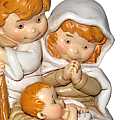 Il soprammobile natalizio, in resina colorata, rappresenta una piccola scena con Giuseppe, Maria e Gesù Bambino nella mangiatoia. Madre e padre fanno da sfondo e adorano il Bambino che giace tra la paglia. Una piccola lampadina all'interno della statuina si attiva con un interruttore posto sul fondo. La luce esce dai fori a forma di stella. La luce è di diversi colori e gli effetti luminosi variano, dalla dissolvenza lenta all'intermittenza più veloce. La piccola Sacra Famiglia misura 10 cm d'altezza e 8,5 cm di larghezza. Lo spessore di soli 7 cm rende questa graziosa decorazione natalizia perfetta anche per a spazi contenuti. Lo stile dei personaggi, caratterizzato da volti paffuti, ricorda un po' le raffigurazioni dei cartoni animati e rende la piccola natività un regalo ideale per bambini o per alunni del catechismo.