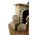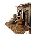 Accessori per presepe: Cantina con bevitore ubriaco. Dimensioni: 19 x 15 x 16 cm. Materiali: plastica, legno, sughero e muschio. Realizzato artigianalmente in Italia.
