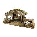 Capanna per Presepe con Recinto e Luce Effetto Fuoco 220V per Statuine 10/12 Cm Non Incluse, Legno, 56x21x25 Centimetri