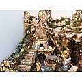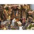 Villaggio agricolo di grandi dimensioni - cm 110 di base x cm 70 x cm 73 di altezza. Interamente realizzato a mano, dall'assemblaggio dei vari pezzi alla stesura della pittura. Il Villaggio rappresenta un piccolo paesino rustico di campagna. Osservando questo articolo partendo da sinistra, possiamo notare che è stata realizzata una cascata dinamica funzionante ad acqua che sembra nascere da quel frammento di sughero. Proseguendo troviamo una scalinata che porta a un mulino a vento alimentato elettricamente; mentre alla base è stato costruito un piccolo fuoco da campo. A destra invece troviamo la parte principale di questo villaggio: la Grotta con la nascita di Gesù Bambino e infine una fontana ad acqua coperta con un tetto in coppi di terracotta. Questo articolo viene arricchito e impreziosito da 7 statuine in resina da 18 cm dello scultore "Martino Landi" (Maria, Giuseppe, Bambino nella culla, bue, asino, un pastore con pecora e una coppia di pecore). Prodotto in Italia.