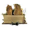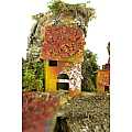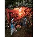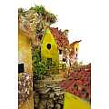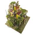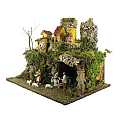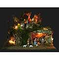 Villaggio con case illuminate. Completo di 6 statuine in resina da 6,5 cm e 3 pecore. Alimentazione elettrica 220 V. Dimensioni: 38 x 28 x 30 cm. Materiali: Legno, Sughero e Muschio. Realizzato artigianalmente in Italia.
