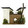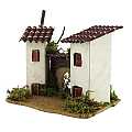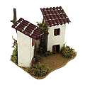 Accessori per presepe: Casetta con tegole rosse. Dimensioni: 15 x 10 x 14 cm. Materiali: legno, sughero, muschio, cartone e plastica. Realizzato artigianalmente in Italia.
