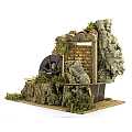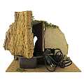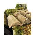 Accessori per presepe: Mulino ad acqua con tegole. Alimentazione elettrica 220 V. Materiali: legno, sughero, muschio e stucco. Dimensioni: 25 x 20 x 21 cm. Altre caratteristiche: tegole in terracotta. Realizzato artigianalmente in Italia.