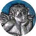 Medaglia tonda in metallo raffigurante l'Angelo, da 2 cm di diametro.