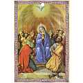Insieme al biglietto c’è anche un quadretto in legno MDF stampato e finemente curato nei dettagli, che raffigura la luce divina dello Spirito Santo che illumina i fedeli e scende su di loro sottoforma di fiammella, simbolo di questo speciale sacramento.