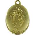 Ciondolo a forma di medaglia raffigurante la Madonna che scioglie i nodi. L'immagine della Vergine è resinata, vale a dire ricoperta da uno strato di resina trasparente, che protegge la raffigurazione e rende i colori dell'immaginetta lucidi e ben visibili. L'immagine è incastonata in una medaglia da 3.5 cm, realizzata in metallo dorato impreziosito da strass che ne segnano il contorno. Il prodotto è completamente realizzato in Italia.