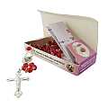 La scatolina che misura cm 10 per 4,5 ha esternamente l'immagine di Maria che scioglie i nodi. Si presenta molto gradevole alla vista e simpatica all'utilizzo. Contiene un rosario in vetro lucente con croce argentata e crociera con l'immagine di Maria che scioglie i nodi, inoltre ha all'interno un foglietto che aiuta a recitare con cura il Santo Rosario. Ottimo regalo per tutte le età. Totalmente made in Italy.