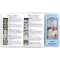 Il libretto, composto da 8 pagine, si presenta con una copertina in plastica trasparente e nell'interno vi è un piccolo rosario con i grani tipo perlina del diamero di mm 4.