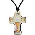 Croce in legno mdf raffigurante i simboli della Prima Comunione con cartoncino che ricorda questo sacramento.