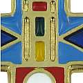 Croce in metallo dorato e smalto blu con cordoncino