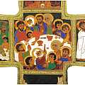 Croce realizzata in mdf raffigurante al centro l'ultima cena con cordinoncino per poter essere appesa alla parete.