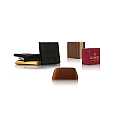 Selezione di cioccolatini gourmet Domori racchiusa in un elegante cofanetto bianco abbellito da una copertina raffinata nei toni del blu navy e dell’oro.
