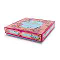Cofanetto quadrato di color rosa, dalle tinte accese, che racchiude 16 praline assortite.