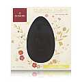 Tavoletta di cioccolato fondente extra realizzato con pregiato Cacao Criollo 75%, 500 grammi. L'incarto con finestra intagliata a forma di uovo rende questa tavoletta di cioccolato gourmet ideale per essere regalata a Pasqua.