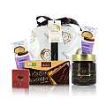 Questo cesto natalizio, dedicato agli golosi, contiene una prelibata selezione di prodotti gastronomici dolci in cui il gusto pieno del cioccolato, nelle sue diverse forme, è protagonista, vale a dire: