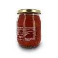 Vasetto di pomodori "Pera d'Abruzzo" a pezzettoni (peso netto: 550g / sgocciolato: 390g). Questo tipo di pomodoro è molto apprezzato per la sua dolcezza, per la scarsa presenza di semi e per l'abbondante polpa.