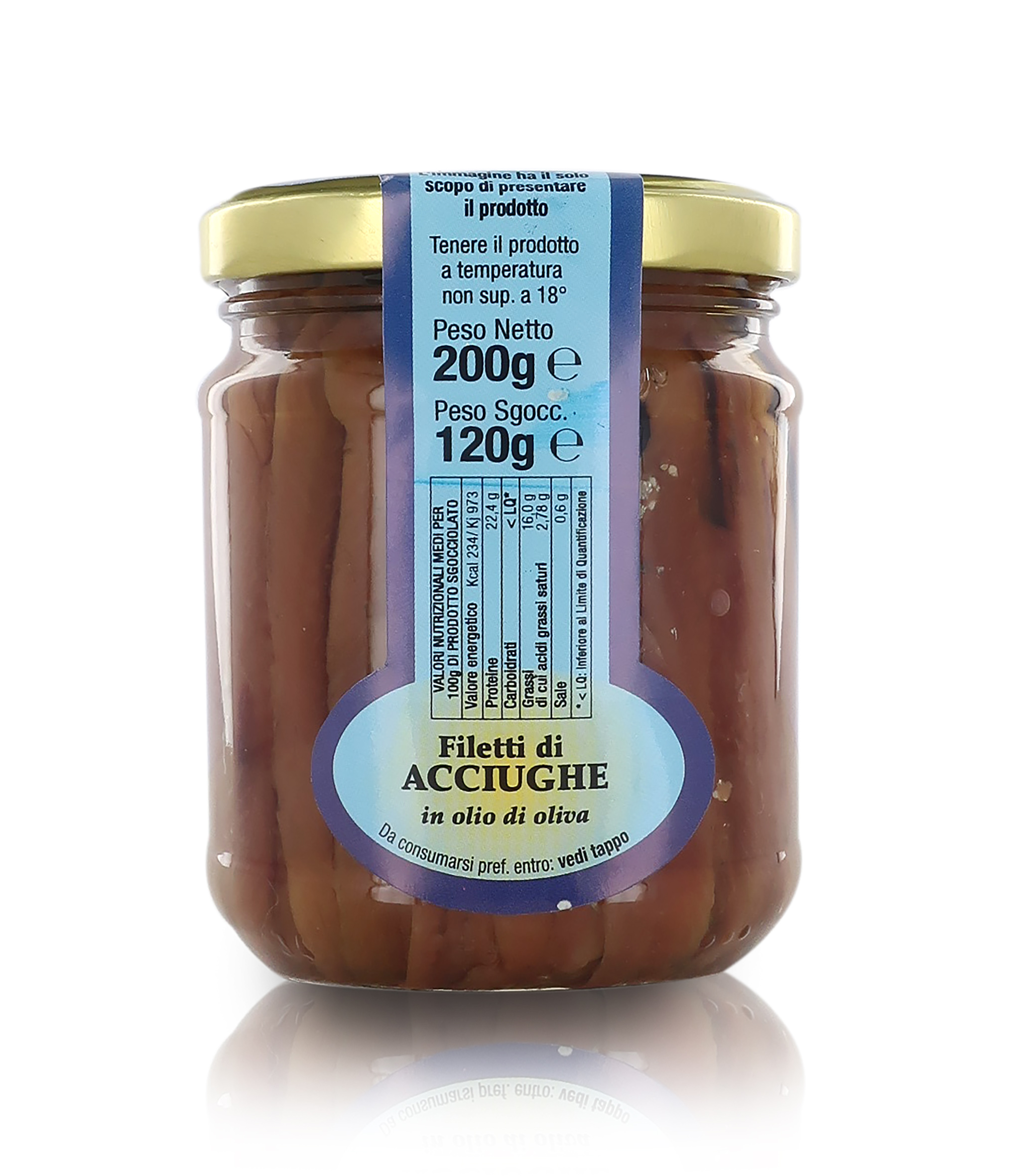Filetti d'acciughe in olio d'oliva (vasetto di vetro da 200g).