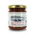 Ingredienti: polpa di pomodoro, TONNO, finocchietto selvatico, uva passa, pinoli, olio d'oliva, sale marino, ACCIUGHE, sale. Riporre in frigo dopo l’apertura del vasetto.