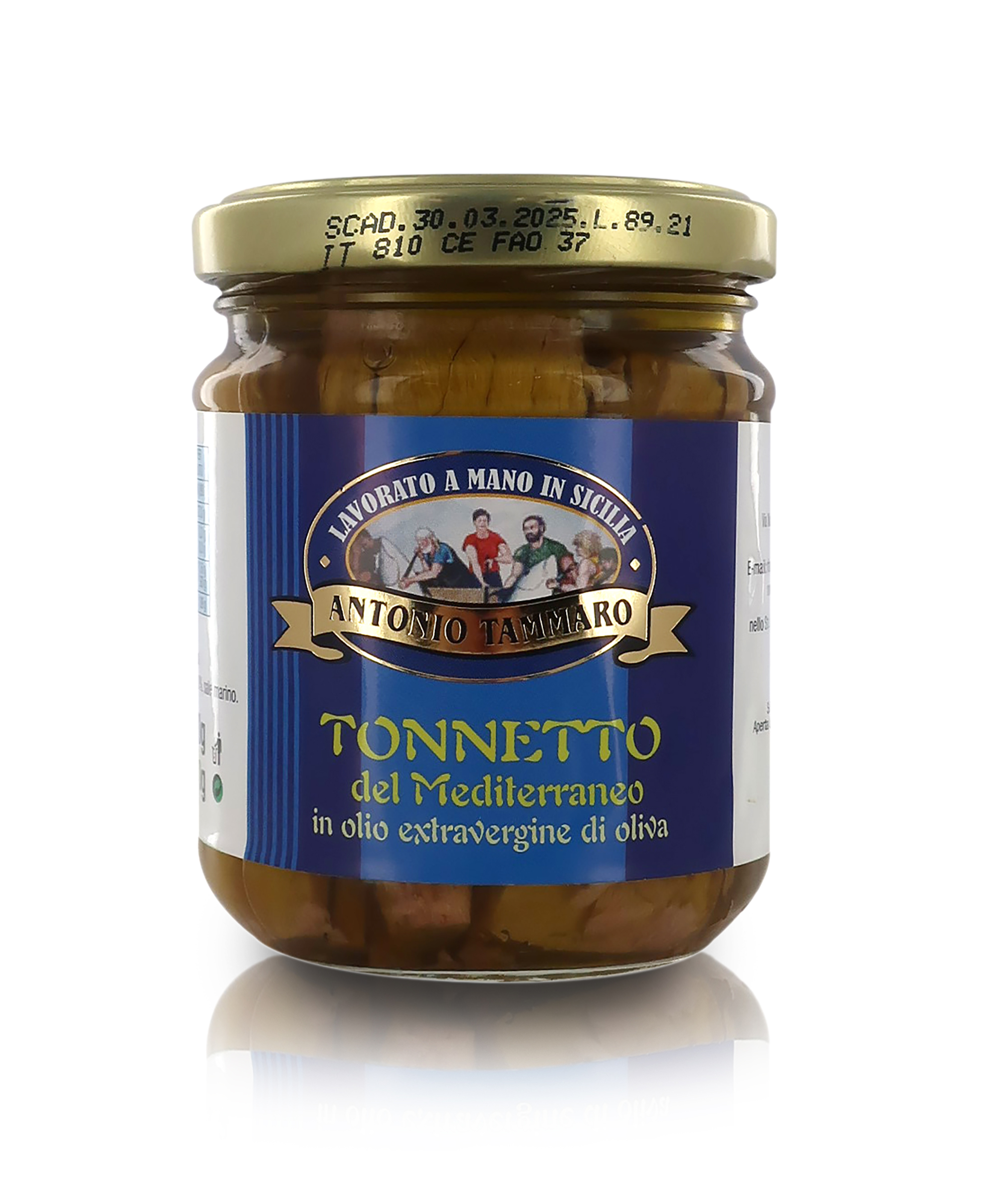 Tonnetto Alletterato del Mediterraneo, conservato sott'olio extravergine d'oliva, in vasetto da 200g.