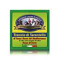 Trancio di pregiato tarantello di tonno rosso del Mediterraneo sott'olio, in confezione di latta a strappo da 300g.
