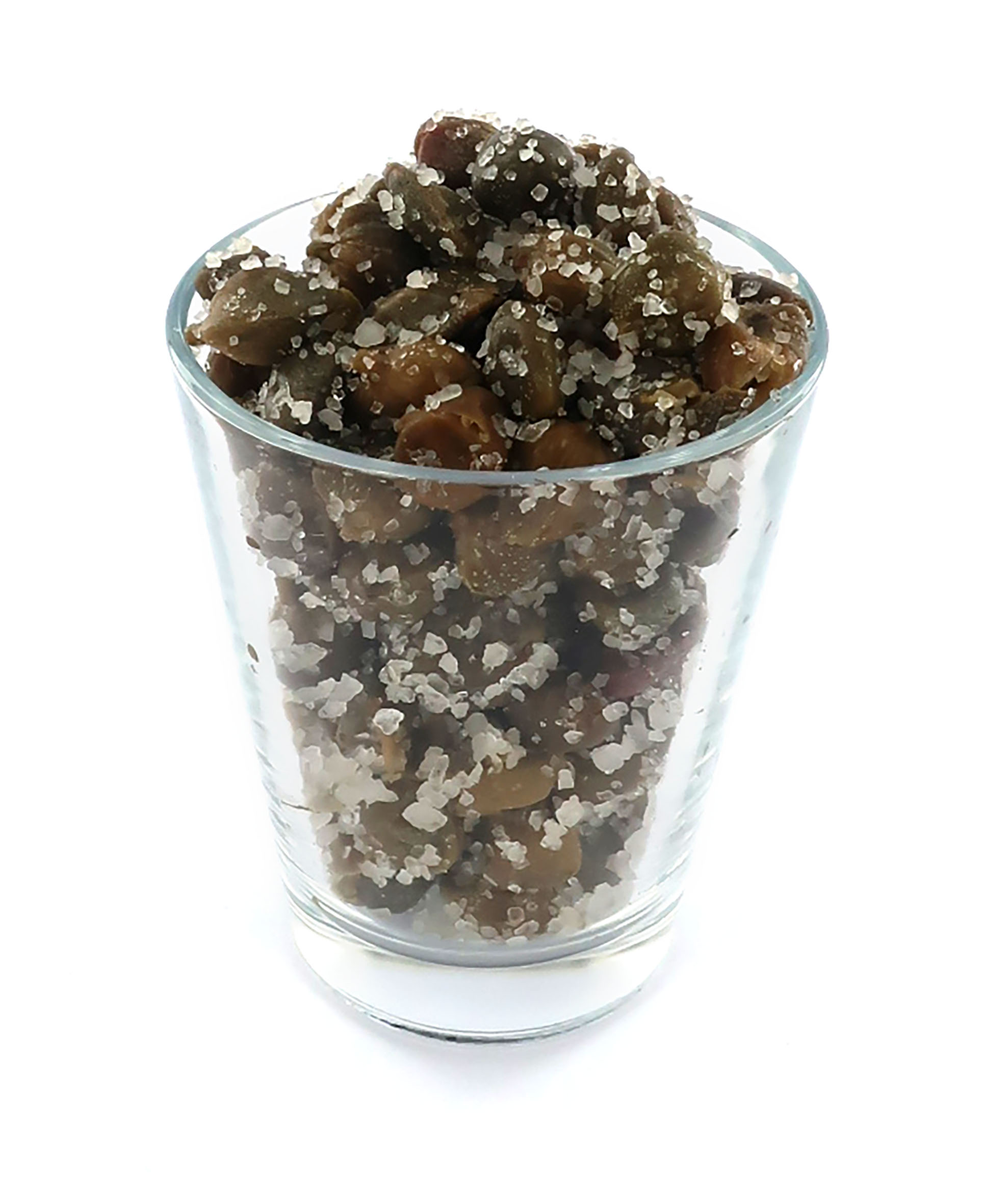 Capperi selezionati, calibro medio, conservati in sale marino. I capperi medi sono indicati sia per condire sughi di pomodoro o per realizzare creme e patè, sia per guarnire piatti di pesce e di carne rossa o bianca. Sciacquarli dal sale prima dell’uso.