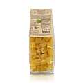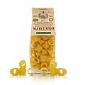Pasta formato "calamari" (una sorta di pacchero corto) al mais e riso bio, linea "La pasta di mais e riso", 8 confezioni da 250 grammi. Le paste di questa linea, realizzate con mais e riso, sono particolarmente indicate per soggetti intolleranti al glutine.