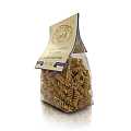 Pasta corta (fusilli) aromatizzata al tartufo, senza glutine (confezione da 250g). Realizzata artigianalmente mediante trafilatura al bronzo, contiene con farina di mais e di riso e piccoli pezzettini di tartufo nero estivo.