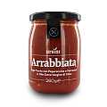Sugo al gusto classico "arrabbiata", pronto da scaldare e da consumare. Basta scaldarlo per 2/3 min. Contiene pomodoro pelato e olio extravergine di oliva, ed è insaporito con basilico, sale, aglio, prezzemolo e peperoncino. La semplicità e la genuinità del gusto del pomodoro, rallegrate dalla piccantezza del peperoncino, sono protagoniste in questo sugo, condimento tra i più amati della tradizione culinaria italiana.