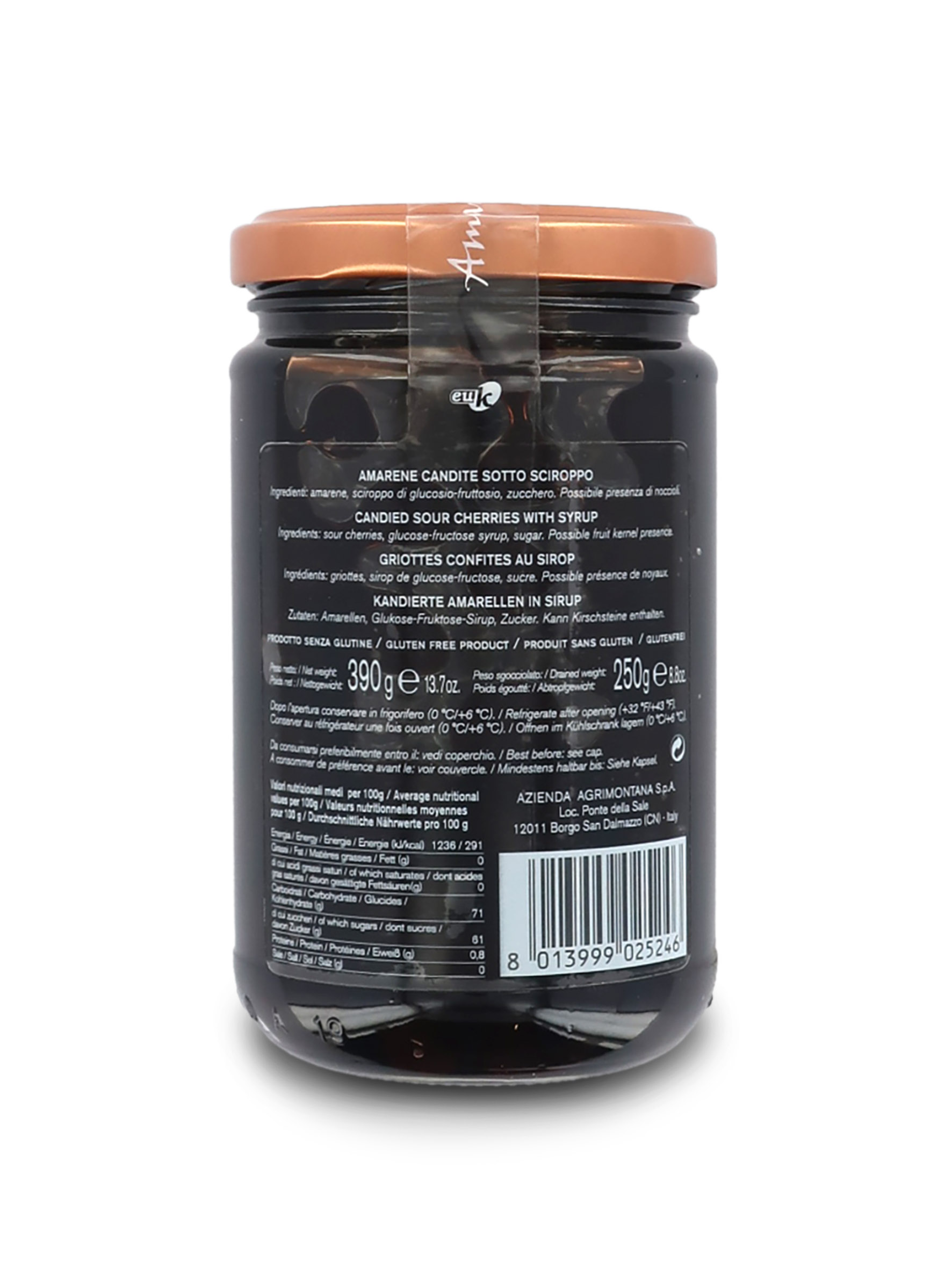 Frutta Candita Artigianale, Amarene Candite Sotto Sciroppo, 390 Grammi / Sgocciolate: 250 Grammi