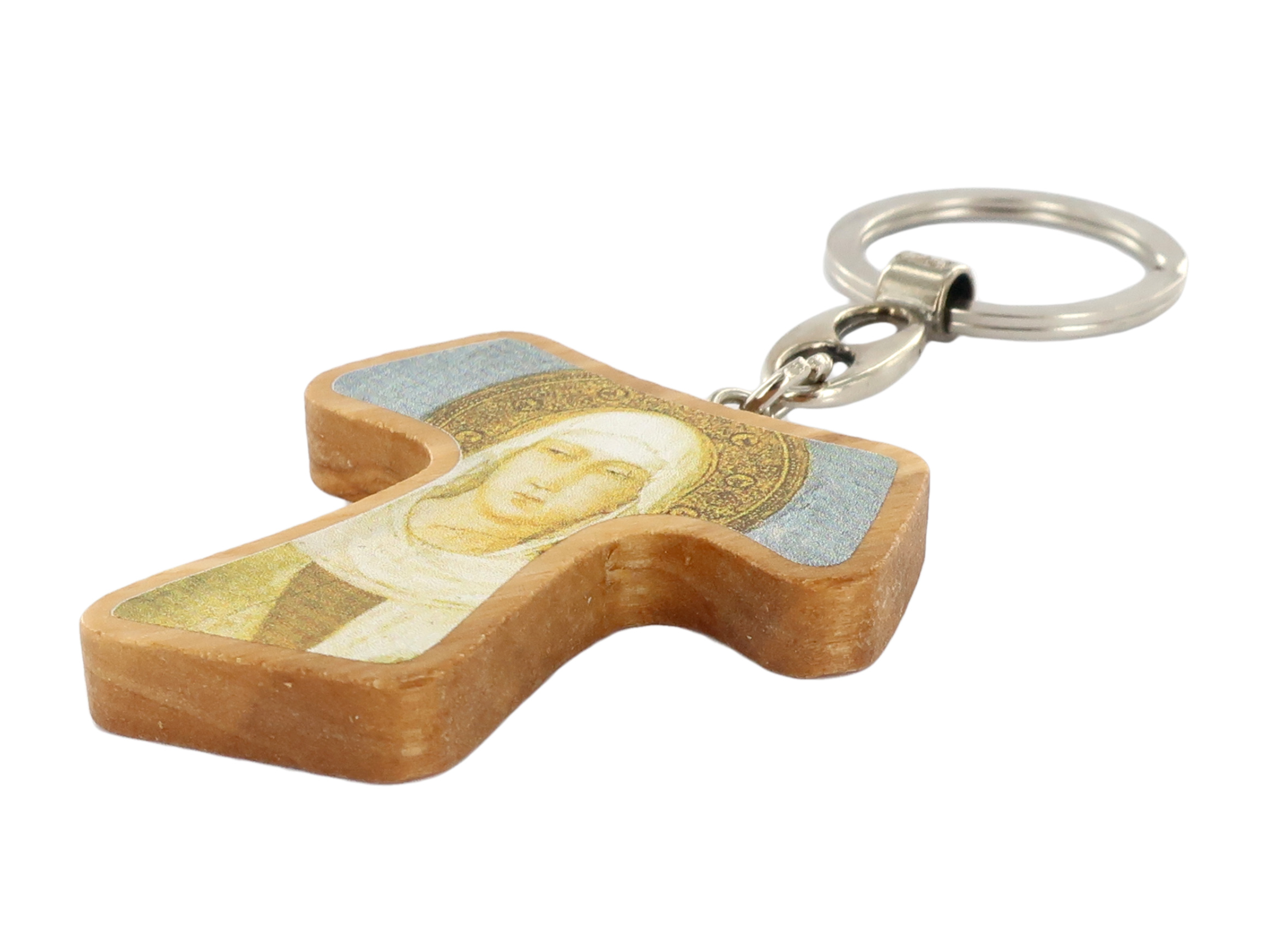 Portachiavi tau Santa Chiara in ulivo immagine serigrafata