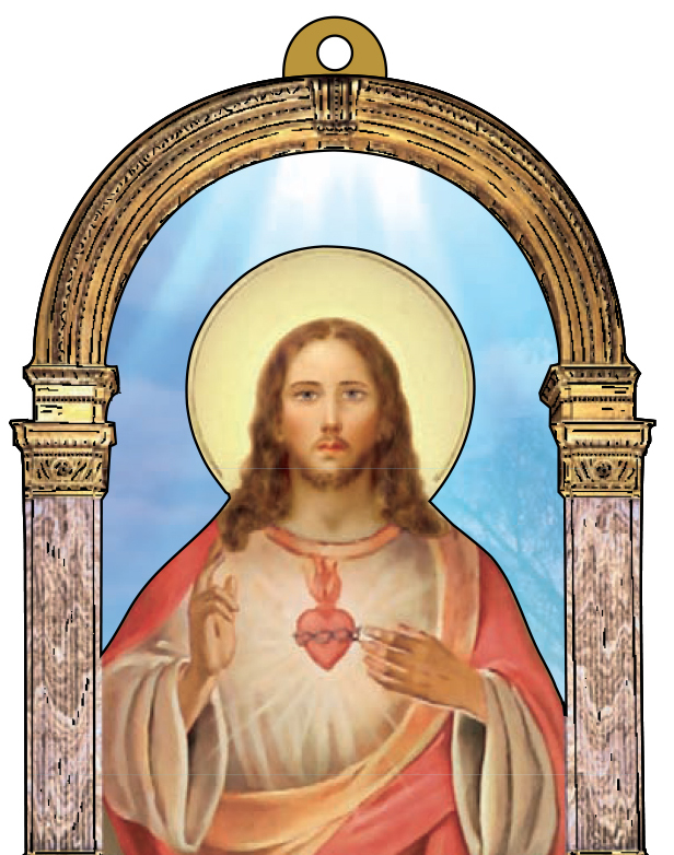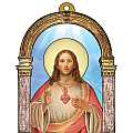 L'acquasantiere rappresentanta il Sacro Cuore di Gesù, di cm 7,2x15,5, è in legno mdf a due livelli e l'immagine è impreziosita con oro a caldo.