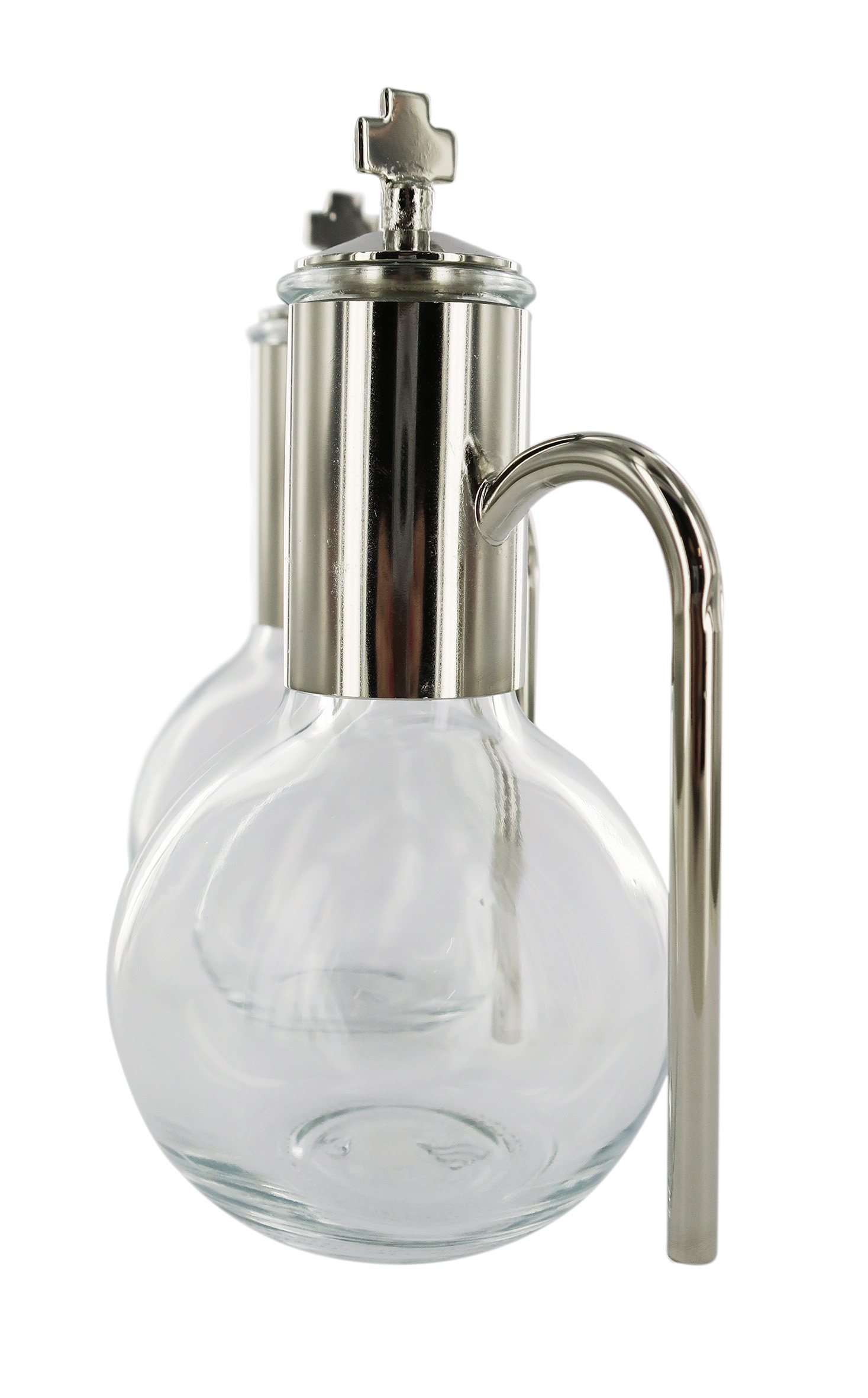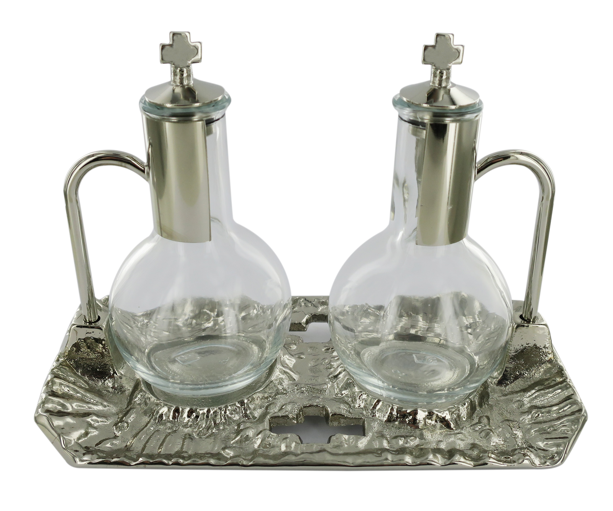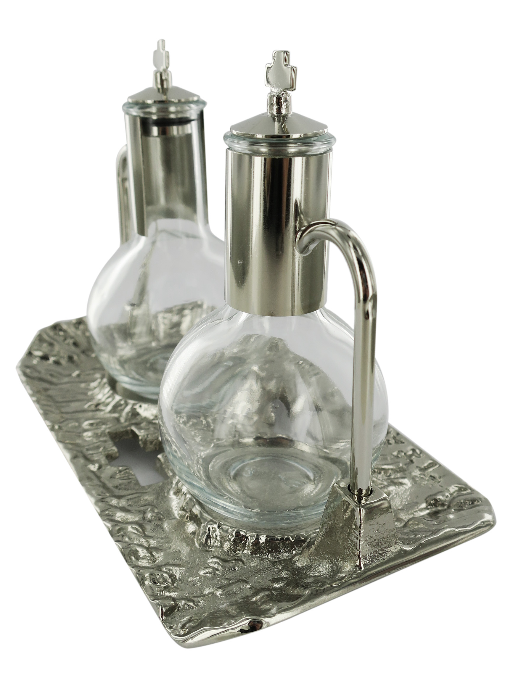 Ampolline da messa in vetro e nichel con vassoio in fusione di nichel, capienza 100cc