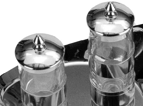 Ampolline in vetro con tappo e vassoio argentato - 100 cc